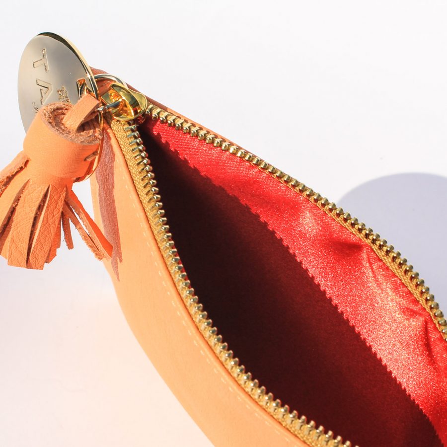 The most versatile bag we ever create. With luxurious red silk lining it will be perfect evening bag. Pouch Bag designed to hold different essentials. The zip closure will keep your make-up safe. It will make travelling much easier and help you stay organised. It is perfect if you prefer to keep your coins separate from your wallet, or it can even serve as a zipped card and cash holder. This compact version will even fit in a cross-body bag.