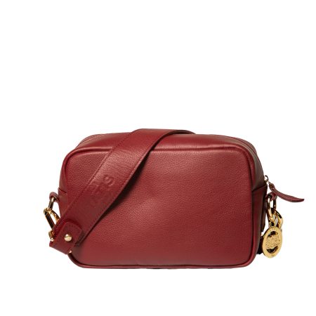 Details: Mirrored gold-tone hardware, red fabric lining, leather strap
