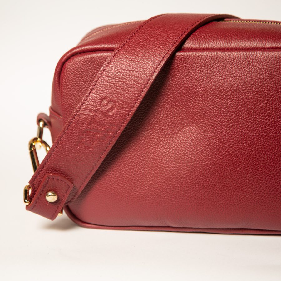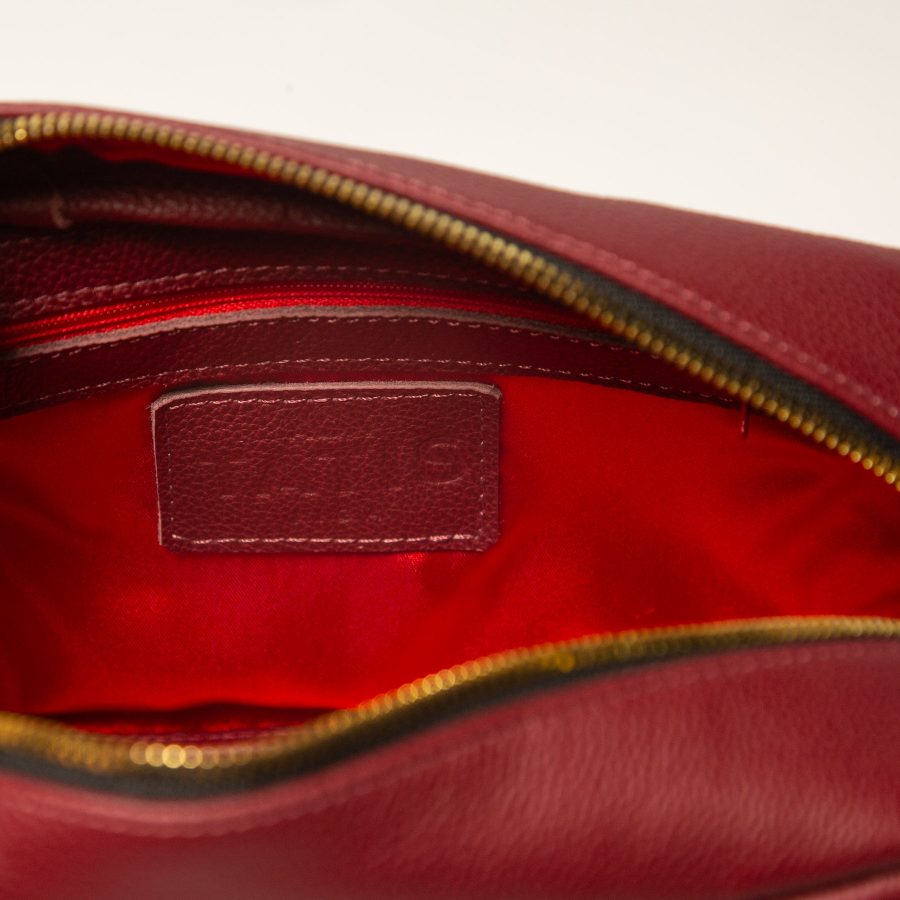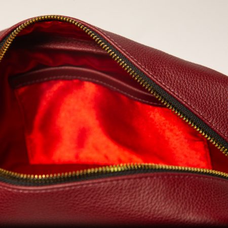 Burgundy soft grain leather from Bologna, Italy. It is the ‘caviar of leather’ and ages beautifully. The natural grain surface of the skin makes each piece unique. This is one of the most expensive calf skins you can buy and should give pleasure for generations.